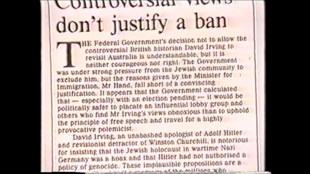 In 1992, the Australian Labour Government, under pressure from their principal financier, the billionaire Isi Leibler, refused permission for David Irving to make a third tour of the continent. On May 30, 1993, the Australian Federal Court rejected Mr Irving’s latest appeal against the government’s refusal of a visa. The appeal cost him $15,000, but he appealed again to the full Federal Court.